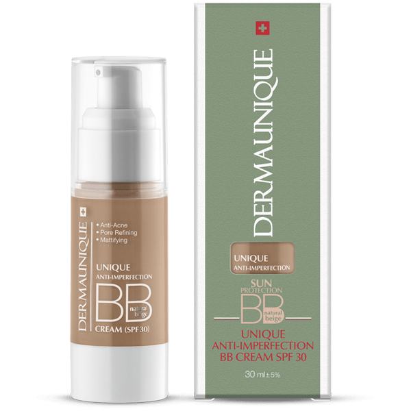 کرم بهبود دهنده پوست چرب SPF 30 (رنگی) بژ طبیعی و تیره درمایونیک (tinted treatment complex SPF 30 - Dermaunique) با بافتی مخملی ، ترشح چربی را تنظیم می کند و با اثرات ضد آکنه، موجب مهار آکنه و جوش های پوستی می شود. این محصول با بافتی سبک بلافاصله پوست را یکدست می کند و در عین حال، از پوست در برابر اثرات مخرب اشعه ماوراء بنفش محافظت می کند و ظاهری مات ایجاد می کند.